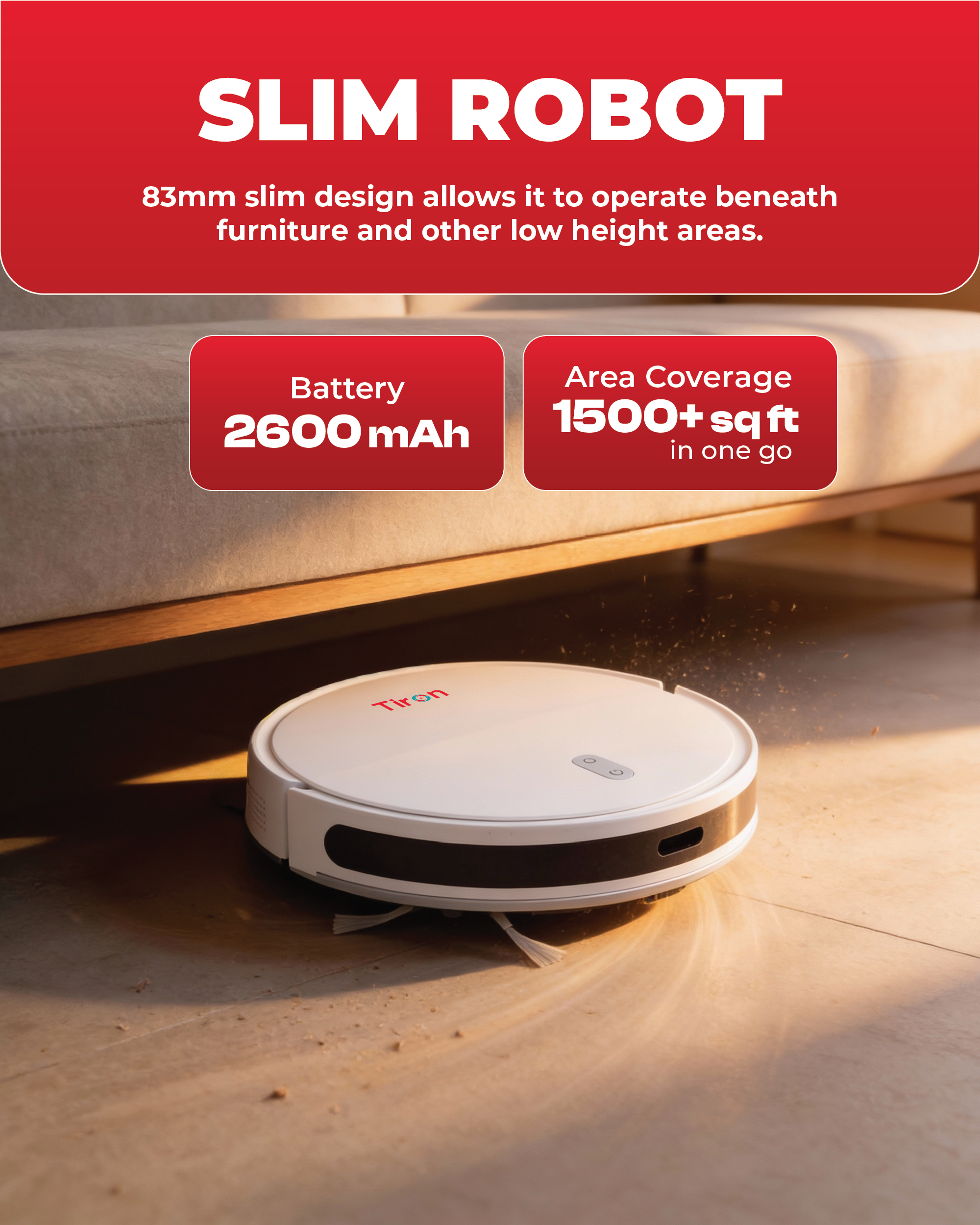 • Ensures cleaner floors across living rooms, bedrooms, and kitchen spaces.