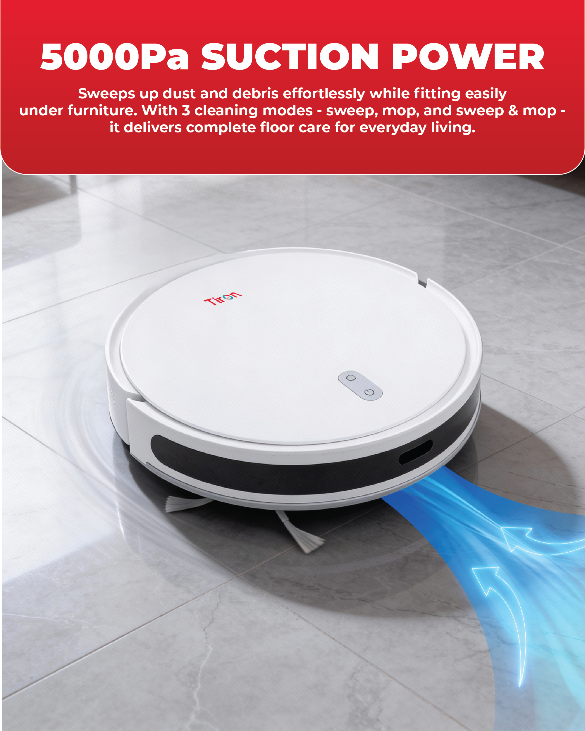 • The Tiron TRV 10P is designed to automate everyday floor cleaning with intelligent navigation and powerful suction.