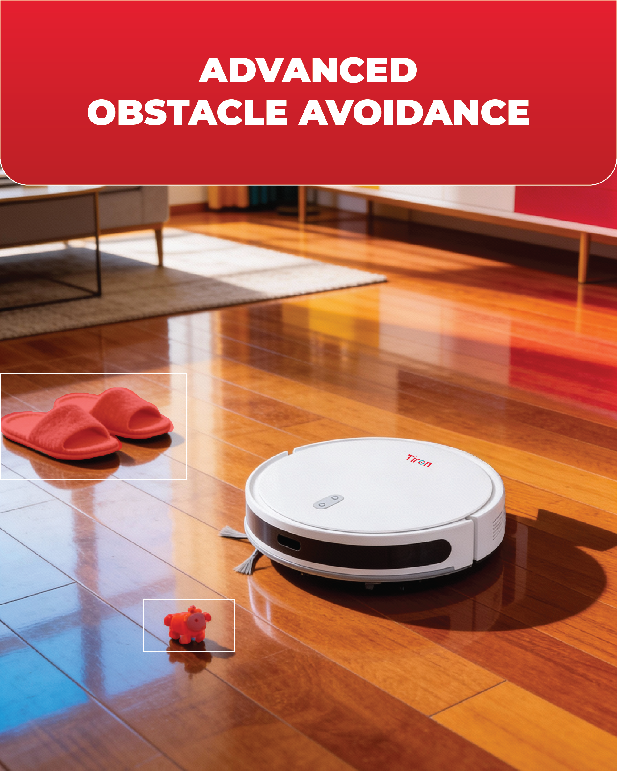 • Advanced sensors help the robot detect obstacles and avoid collisions.